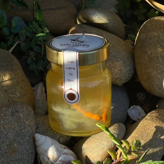 Yến sào là một loại thực phẩm giàu giá trị dinh dưỡng, chứa nhiều Axit amin thiết yếu, nguyên tố đa - vi lượng hỗ trợ hệ miễn dịch và sức đề kháng cho cơ thể. Thành phần: Sợi yến tươi nguyên chất 100% (gồm 10g yến tươi = 2g yến sấy khô), gừng, đường phèn.