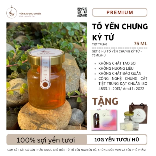 Set 6 Hũ Yến Chưng Kỷ Tử Tiệt Trùng Premium (Hũ/75ml)