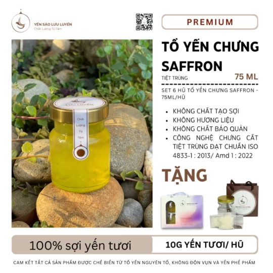 Set 6 Hũ Yến Chưng Saffron Tiệt Trùng Premium (Hũ/75ml)