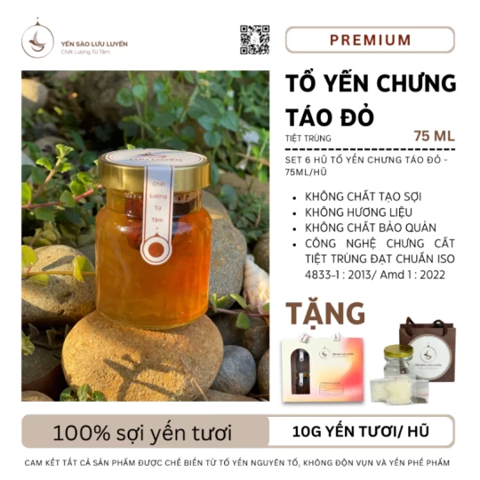 Set 6 Hũ Yến Chưng Táo Đỏ Tiệt Trùng Premium (Hũ/75ml)